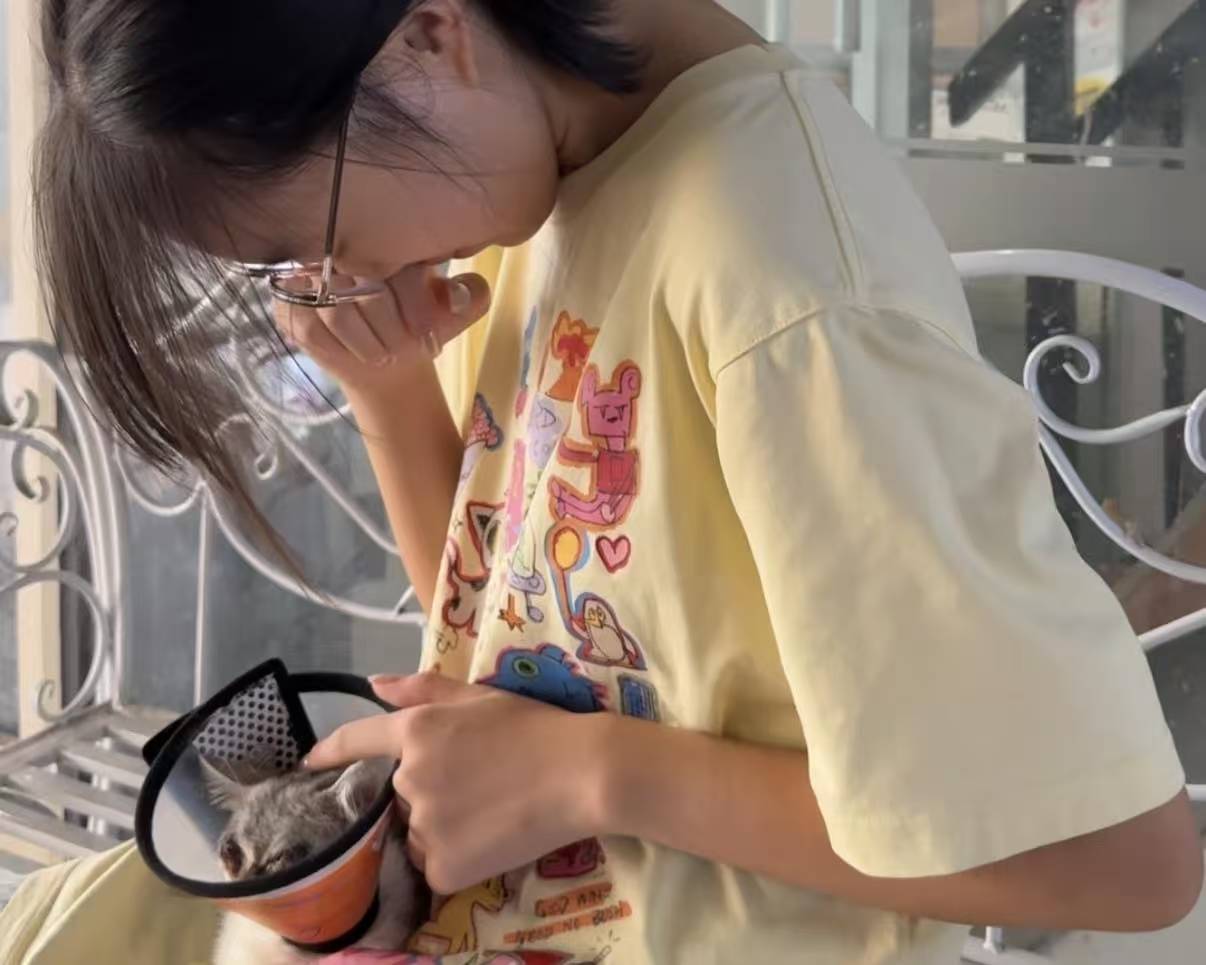 一个善良的女孩为它停下了脚步。她没有能力带它回家,也没有能力治愈它,只能眼睁睁看着这个小生命在咫尺之间艰难求生。女孩小心翼翼地把它捧在手心,像捧着一件即将破碎的珍宝。此刻,旺汪家园成了女孩和小猫唯一的那束光。去往医院的路上,小女孩喃喃自语地鼓励着它,泪水却止不住地滑落。她三步并作两步冲上楼梯,将最后的希望寄托于医生。希望的光本已如此微弱,检查结果却更加让人揪心。花生的双眼已严重感染,眼球脱出, 但更令人心痛的是,它太过瘦小,营养严重不良,甚至无法承受麻醉的风险,只能等它身体情况好转后才能进行摘除手术。这意味着,在它长大到足以手术前的每一天,它都必须清醒地忍受着双眼溃烂的疼痛。