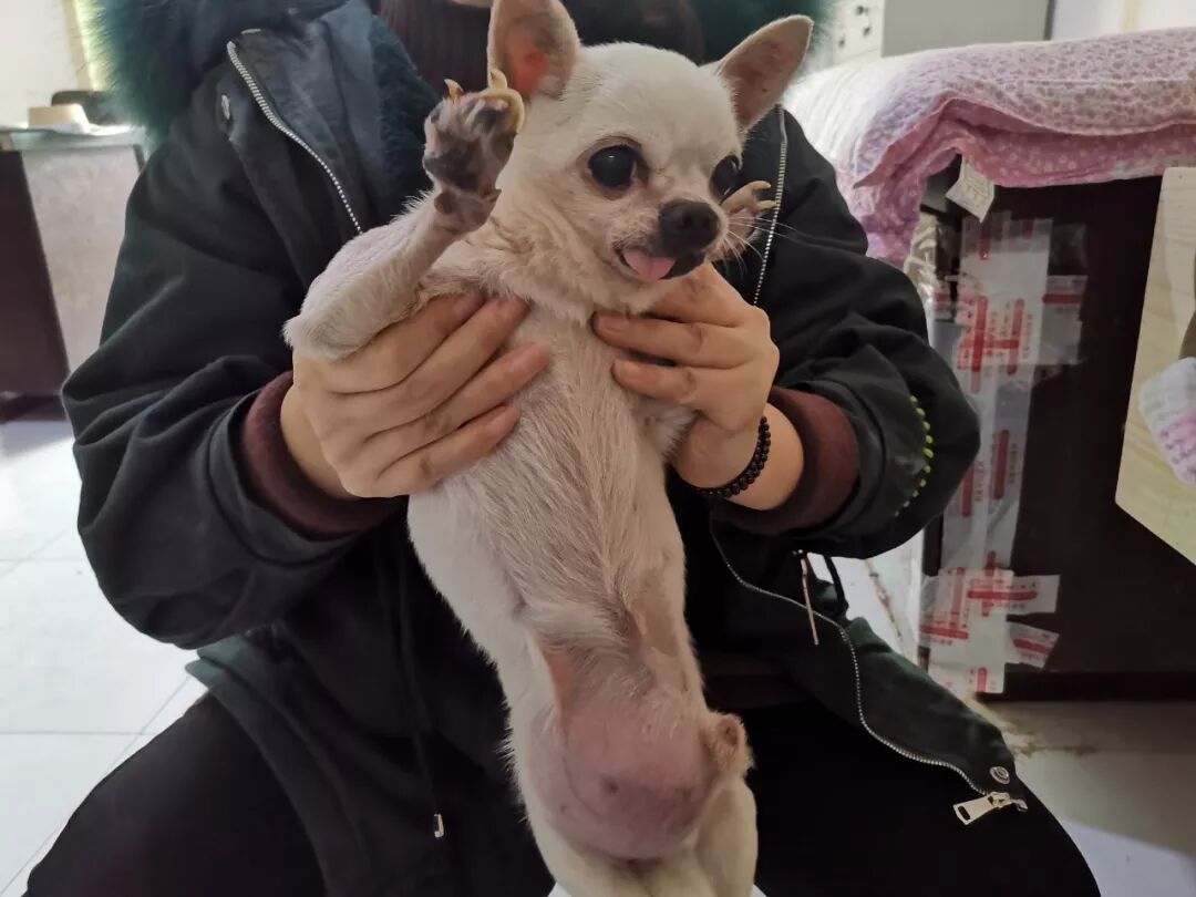 抱起它回到家。我才发现它被遗弃的缘由。在它的肚子上,长着一个大大的肿瘤,脏兮兮的身子,散发出一阵阵恶臭。给它洗澡,吹干,它很乖巧,一动不动的躺着。很享受着久违的关爱。它的年龄不小了,牙齿几乎没有了。给它取名叫吉米,希望它大吉大利,天天都能有吃的,别再流浪。