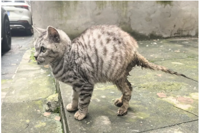 走近些,才能看清那触目惊心的细节:尿液长期浸染,让它后腿和臀部的皮肤大片溃烂,血肉与污秽黏连在一起,让人不忍直视。即便承受着这样的痛苦,在被路人厌烦地挥手驱赶时,它也从不哈气凶人,只是愣一下,然后默默地、委屈巴巴地退回到冰冷的角落,把自己蜷缩成一个小小的、颤抖的毛团。