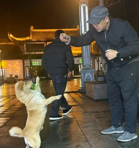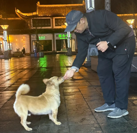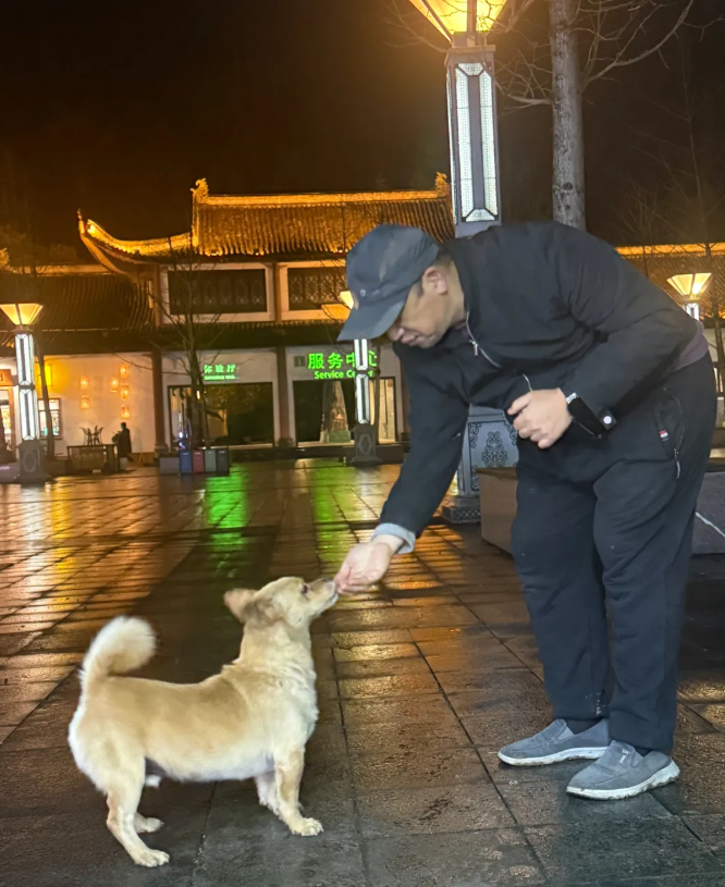 它带着我们一遍遍在深夜的停车场里找来找去,直到商贩都准备打烊了,它也没有放弃(我手里那仅剩的半根火腿肠)。突然停车场靠近森林的角落里一个白影出现,我知道那就是小白。按捺住内心的狂喜和不安,是时候派出了我在武隆唯一的朋友小倩了。小倩这个朋友是值得交的,收钱(火腿肠)是真办事,它自告奋勇的冲上去,带着小白就往停车场中间走,只有哪里才有躲着吹麻的机会。但真的是好事多磨,一辆大巴停了进来,车上下来的司机和导游小姐姐又看见了受伤的小白,要再次上去捉它。惊吓后的小白向森林逃去,我和敏姐也只能分头拦截了。好消息是在小白快逃进森林前,敏姐抓住了最后的机会,坏消息是小白逃进了森林。