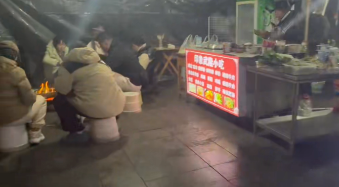 天渐渐黑了下来,冷得瑟瑟发抖的我和敏姐,机智的发现了景点小卖铺边升起的篝火。腼腆的敏姐并不好意思去烤火。但善良的店老板知道我们是来救小白的,主动邀请我们进去白嫖(烤火),重点是看见冷得打颤的我还送了一杯热气腾腾的姜红茶。