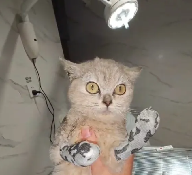 在散发着腥秽的水沟里,它瘦骨嶙峋的身子蜷在湿冷的淤泥中,两只前掌被齐齐斩断,裸露的伤口深可见骨,被粗糙的石子磨得翻出了惨白的肉。没人知道它在这儿困了几天,饿到脱形的它,连抬头的力气都快没了,却还在断断续续地发出细弱的喵呜声。那叫声微弱得像风中残烛,一声声唤着路过的人,可来来往往的脚步,终究都化作了漠然的远去。它被砍断的前掌开始结痂,然后又再次被磨得血肉模糊,但它还是用受伤的前掌拼命地向上攀爬,它想要逃出这个深坑,但一切都是徒劳。